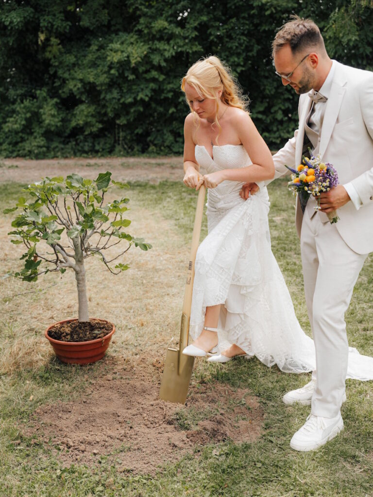 In der freien Trauung startete das Hochzeitspaar mit einem Detail für die Zukunft: mit dem Pflanzen einer Feige. Die Feige steht fürFruchtbarkeit, Wachstum, Reichhaltigkeit und Fülle.
